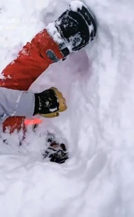 “昨天,我也遇到了这样的事——我被埋了——我抬起头,能把脸露出来,但身体的其他部位都被困住了。每次我试着动一下,脸又会被雪盖住。我大声呼救。谢天谢地,我的滑雪搭子听到了我的声音。她只能看见我的一小块护目镜。太可怕了。”